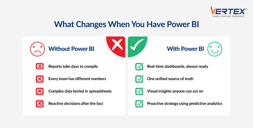 At Vertex, we help organizations unlock the full potential of Microsoft Power BI by transforming fragmented data into meaningful, decision-ready insights.
