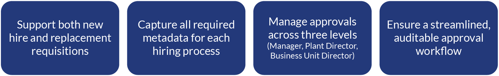 - Manual and inconsistent HR requisition process for new hires and replacements