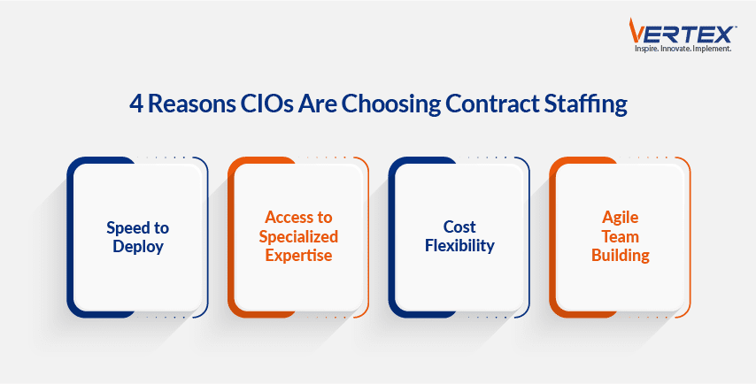 Contract staffing allows CIOs to deploy specialized expertise almost immediately, enabling projects to start and scale faster.