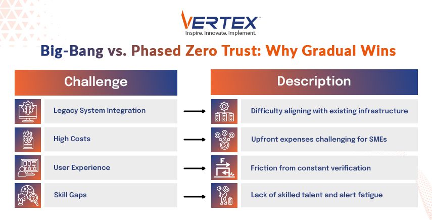 If you are thinking about implementing the Zero Trust method of security in one go, then you will surely face one or all of the complications mentioned below: